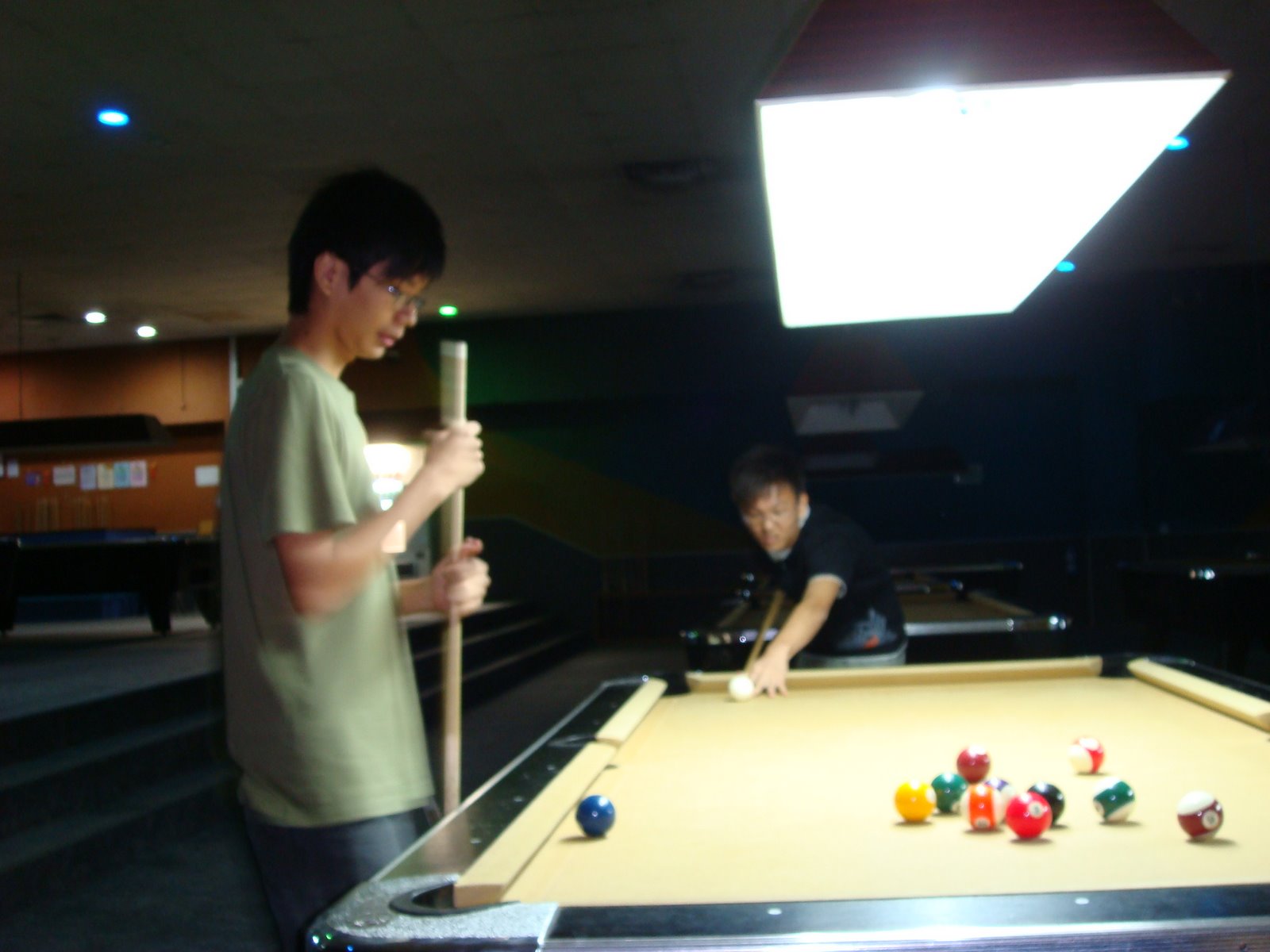 k pool aim.. lim arrive late.. he always does that.. haha.. i trying act pro..